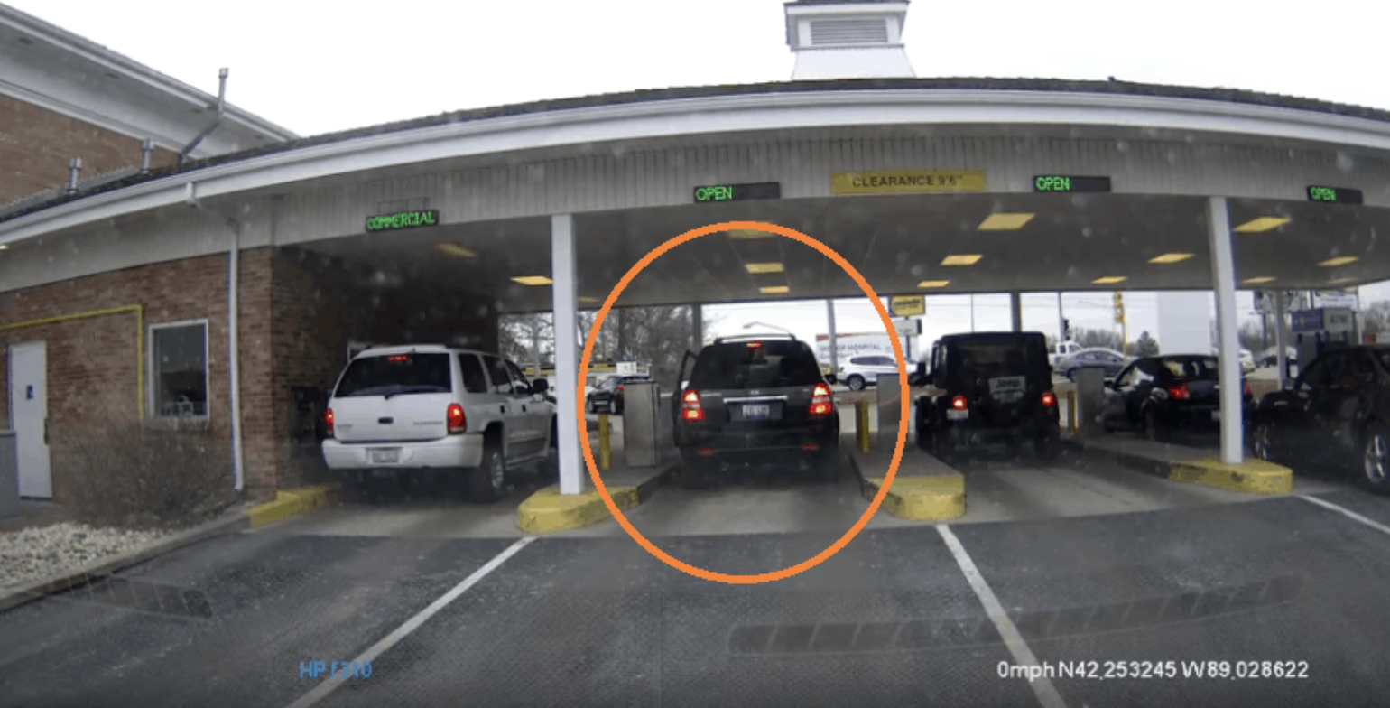Robb Brilbeck stod i sin lokale bank og ventede i kø for at bruge drive-thru, da han fangede noget ret skørt på sit dashcam.