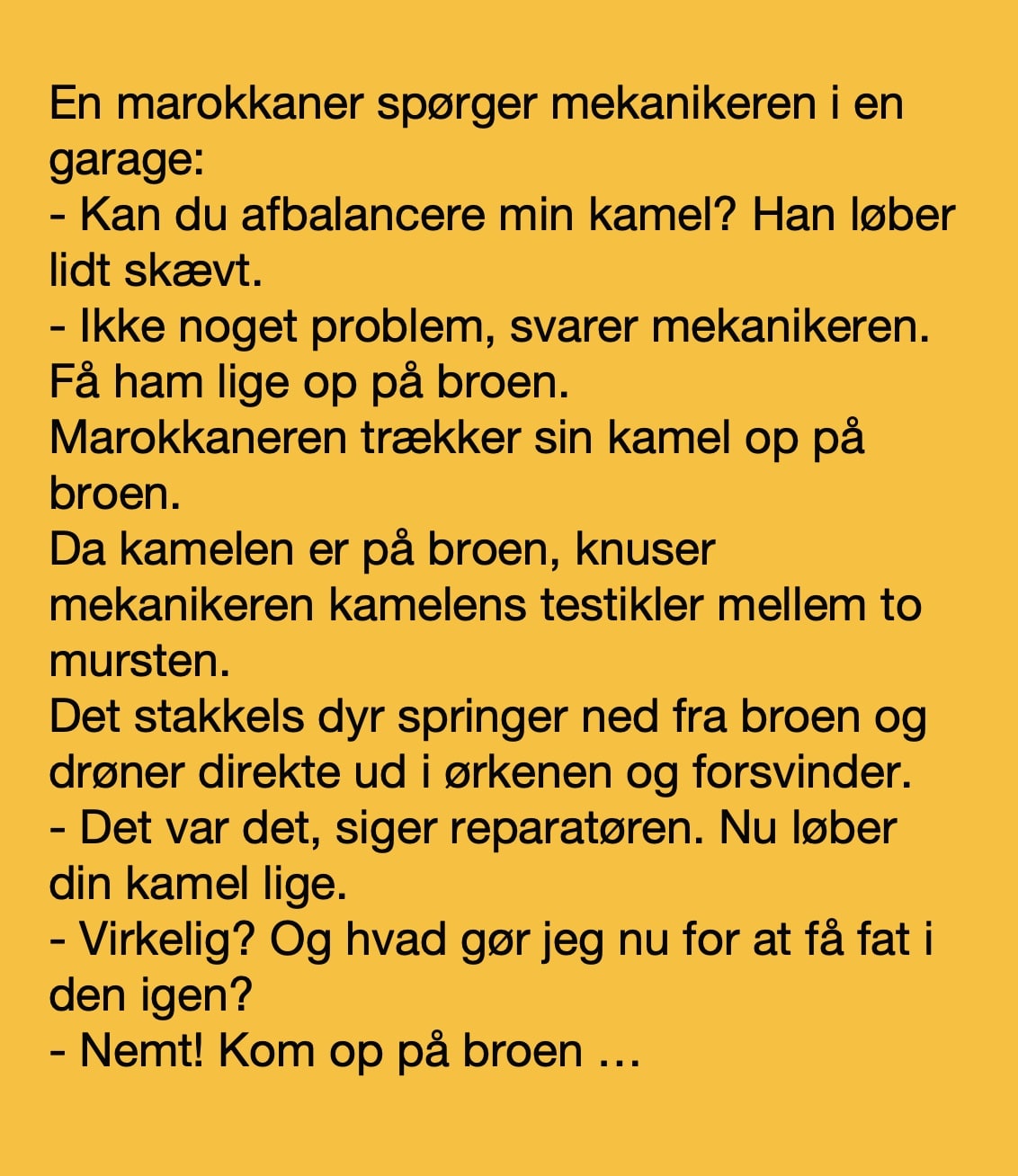 Generelt “Kan du afbalancere min kamel?” peter.nielsen 2 år ago Ingen kommentarer “Hvad gør jeg for at få fat i den?” Læs også: “Smid lige blusen!” Start reklamen for at se videoen ForrigeNæsteBrug dine ← → (pile) taster til at bladre Del på Facebook You may also like “Hvem var det?” peter.nielsen 1 år ago “Hvad skulle det hjælpe!” peter.nielsen 4 år ago “Hvor fanden ved du det fra?” peter.nielsen 3 år ago Sportskommentatorer og fans går amok, mens egern laver touchdown under college-fodboldkamp! peter.nielsen 4 år ago “Hvad er forbindelsen til kogalskab?” peter.nielsen 3 år ago “Du kan tage hvad du har lyst til…” peter.nielsen 4 år ago About The Author peter.nielsen More from this Author