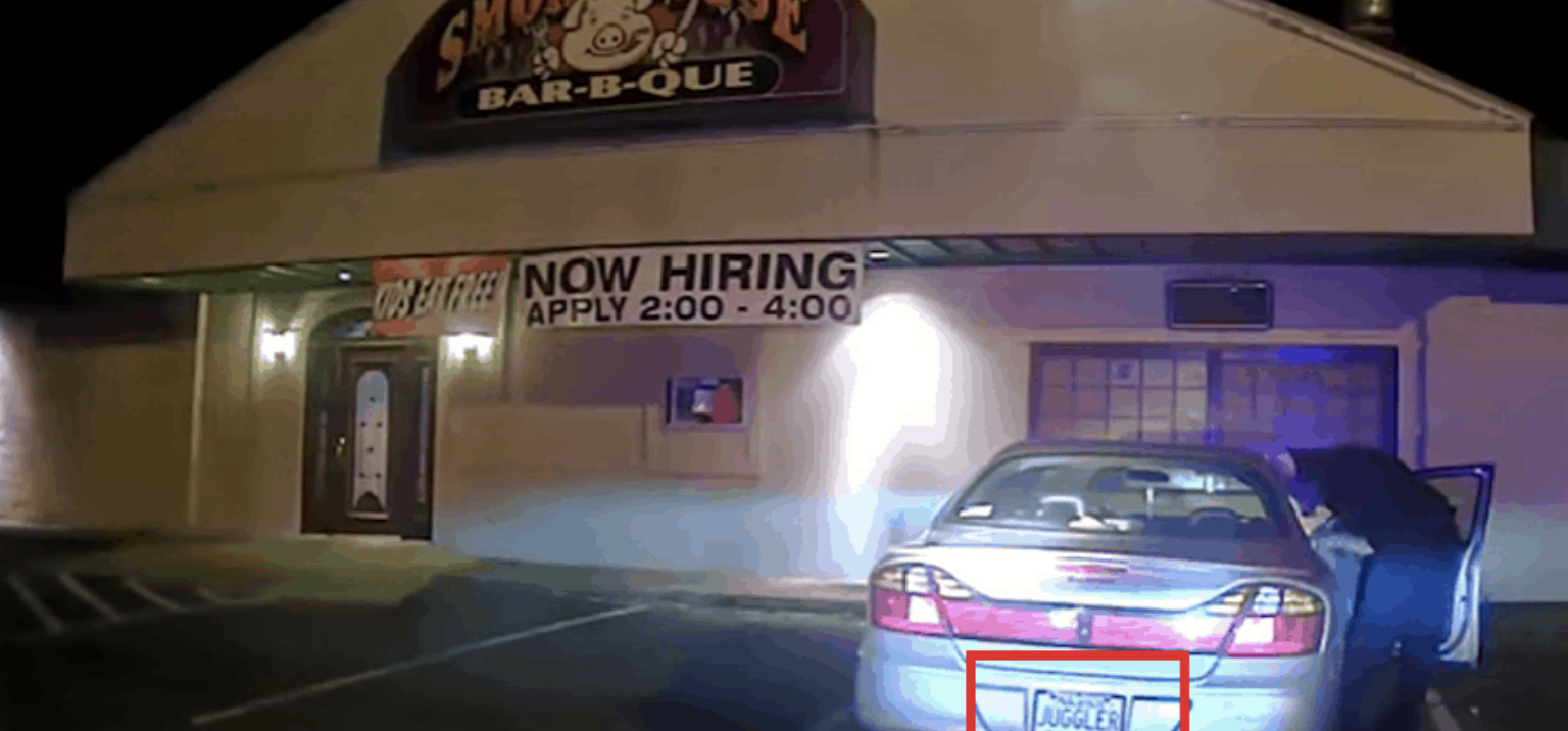 Men trods bestræbelser på at undgå politiet, blev han med nummerpladen ‘JUGGLER’ trukket over.