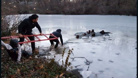 Ethan kom heldigvis sammen med et par andre forbipasserende fodgængere til undsætning. 6 børn blev behandlet på et lokalt hospital for hypotermi.