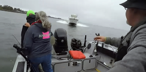 Det lignede en scene lige ud af den klassiske komedie “Caddyshack”, men denne gang var det den store båd, der speedede mod den mindre, men det var bestemt ikke noget at grine af.